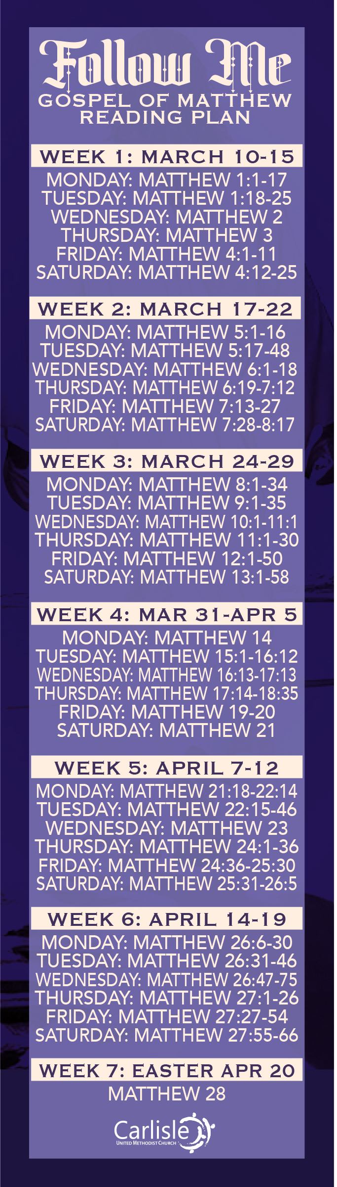 Gospel of Matthew Reading Plan Bookmark Gospel of Matthew Reading Plan Booklet